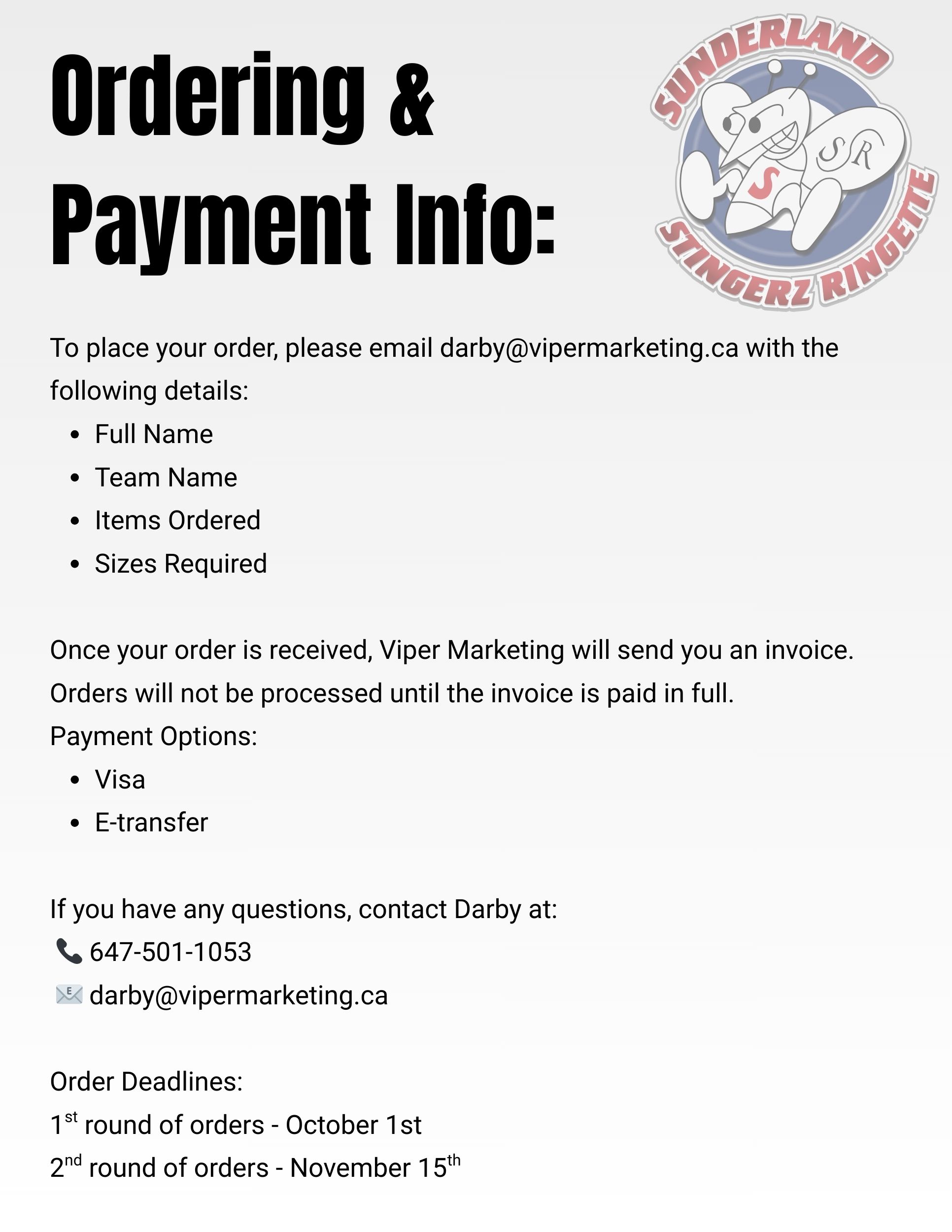 2025/2026 Stingerz Apparel and How to Order